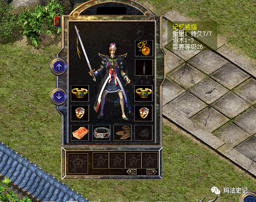 路遇身穿魔法长袍的“小法师”顺便点开看一看装备才发现人家不仅仅是“大法师”,而且还戴了俩记忆戒指,我怀疑这位玩家不仅是来显示高魔实力的,而且还是来炫富的毕竟在复古版本里面的记忆戒指都是很珍贵的,传奇百区虽然这么多年的发展,记忆戒指也不是普通装备啊。