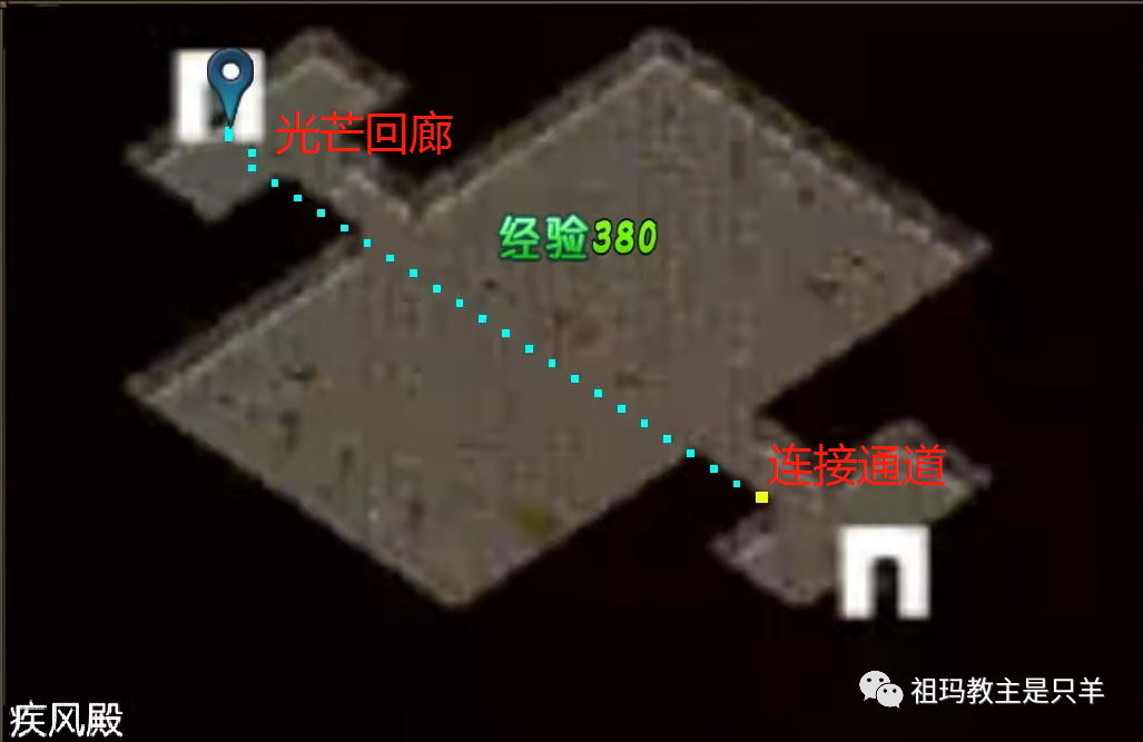 连接通道疾风殿疾风殿,只刷红黑小猪,可使用随机,尽头通往【光芒回廊】(见下图)