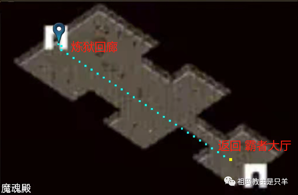 炼狱回廊封魔殿 封魔殿刷虹魔教主(6小时),若干祖玛极品怪以及蝎卫和猪卫,不可随机,左上角出口出去会回到霸者大厅,下线后也会回到霸者大厅(推荐回到炼狱回廊小退,下次再上线回来就好了)