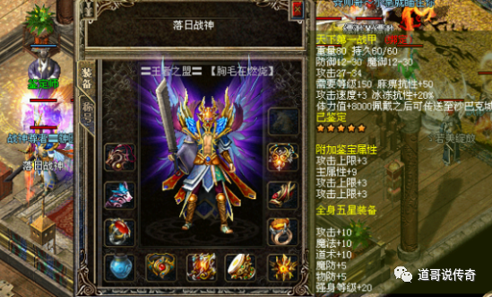 第三,攻击速度+3在后期版本中战士玩家开始追求攻击速度了,通过各类装备或者鉴定系统累积更多的攻击速度可以让玩家的实力大增在传奇历史上有一件盔甲竟然自带攻击速度+3的属性,如上图所示,落日战神是名扬全服的大战士,他在第一届天下第一战中率领行会一路披荆斩棘登顶,获得至高荣誉的奖励——天下第一甲。