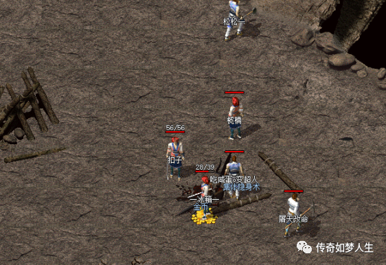 免费回城背了些小药,一路上见到野怪就打,再去的时候沐先生又组了个叫冰箱的小法师,冰箱占了一堆钱,捡上之后我们一行三人组继续抢怪打怪,冰箱在前面丢火球,我们在后面砍怪加血,没一会冰箱喊着没蓝了,我丢了几瓶刚背的小瓶蓝,冰箱背上蓝跑在最前面,等我们砍完眼前的怪物,一抬头冰箱不见了,然后显示冰箱已退组。