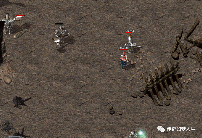 骷髅洞是一个枯燥的地方,没怪不说爆率还极低,从洞穴入口进去,偶尔赶上刷新的时候能砍上两只怪,其它大部分时间都用在了找怪上于是在沐先生的带领下,我们一路从洞穴一层跑去洞穴二层的刷新点,据说那里一次能刷新好多只怪,等刷也是个不错的选择,到门口见一红彤彤的木棍法也在往里跑,不由感叹人家道士升级好快,都会红毒了。