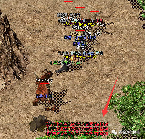 仔细看!这里小蓝冒死进攻火王不仅是有仙纹在手,而且是BOSS身上有削弱的BUFF,无躲闪+虚弱在前给了我勇气,大家看到火王谨慎出手,防御不够强大之前宝宝可能会站不住,这算小TIPS了,谨记!后续会陆续解读召唤流的几大克星BOSS~