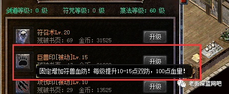 除去仙纹带给符兽的增益,还可以学习巨兽印来增加符兽血防,每级提升固定10-15点的双防,100的血量,这样一套下来符兽基本上就能站得住了,这里提一下,前期固定增幅肯定是比百分比增幅更具性价比,毕竟基础属性都不高的情况下,百分比能有多少呢,所以百分比提升的技能后期学才更猛!
