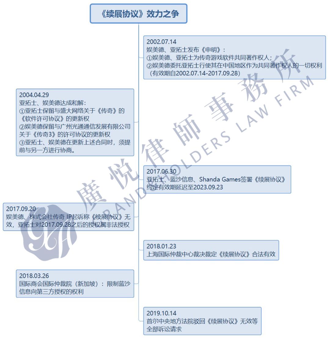 而本次引发圈内关注的信息,正是上述“阶段三”中提及的《续展协议》的效力问题娱美德一方所主张的该续展协议无效的诉讼请求,被韩国法院予以驳回二、韩国法院为何认可《续展协议》的效力关于《续展协议》的法律效力,从公开渠道可获知的信息,我们梳理出以下关键事件:。