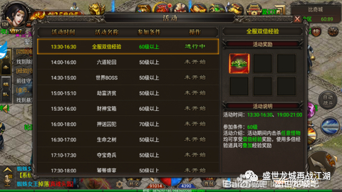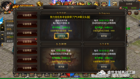 这里开始就讲跟着公会兄弟一起做的活动月黑风高,杀人越货激情的时候到了,都是一些定点的活动能做跟着公会兄弟做做,奖励也比较丰厚,元宝经验装备等等说一下装备打造方面这就比较简单了,主要的也就那这几项:强化-注灵-洗练也不麻烦。