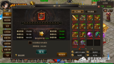 (还有装备分解,是开服7天后才开放等下会简单说一下相对来说灰常重要)关于强化就不过多介绍了 又不是第一次玩游戏