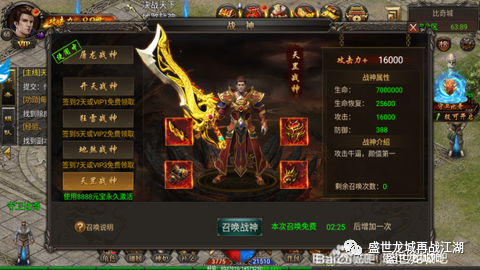 天罡战神的话是最后一个战神买过以后7天后元宝返还等于白得个天罡战神。(上边也有写自己打boss战神相对来说比较重要抗伤害输出)找了个老图便于理解 哈哈哈哈哈哈哈。
