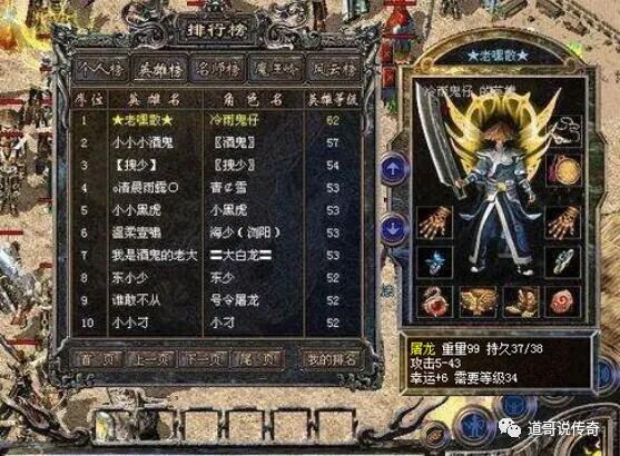 第一点:技术到位相信很多传奇老玩家在升级武器的时候都因为不断破碎而接近崩溃,老道就是其中之一,我的遗憾就是官服生涯中没升级出来+7的武器不可否认的是确实有极少数技术流玩家在升级武器方面很牛掰,他们一般都有独家升级配方,就算是顶级神兵一样可以升级7点属性,确实令人敬佩。