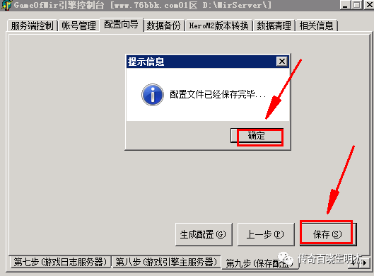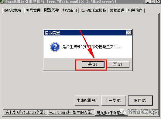 4.保存后会弹出一个小窗口询问是否生成新的游戏服务器配置文件,我们点击是即可