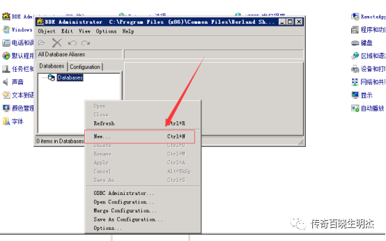 )热血传奇客户端安装在E盘文件夹名字为(Legend of mir)准备工作完成后我们开始架设:第一步配置DBC数据库1.打开服务器控制面板——右上角类别切换大图标或小图标——打开BDE 32位