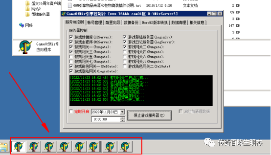 5.生成配置文件之后我们启动游戏控制器检查是否正常如何判断游戏控制器是否正常,打开之后正常会出现七个以上的任务栏这就是属于正常的。正常启动完引擎(游戏控制器指的就是引擎)之后就是开始配置网站