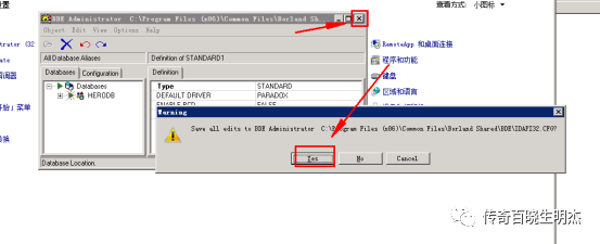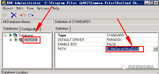 3.把它重命名为HERODB 路径依次选择为D:\Mirserver/Mud2/DB