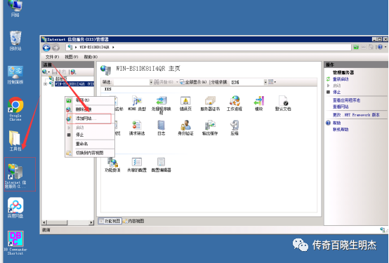 开始配置网站1.打开服务器的IIS右键空白处点击添加网站(如果服务器没有IIS请找服务器商帮你安装)