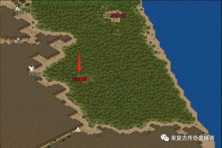 五、未知暗殿走法介绍1.从盟重省出发到达死亡山谷坐标(141:88)附近;