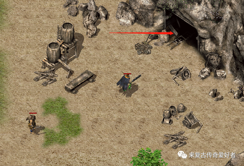 5、废矿区东部到尸王殿:尸王殿入口刷新点在废矿区东部(坐标 142:108)附近,应该很久没人进尸王殿的缘故,僵尸留地上的那个洞就是尸王殿的入口(洞口有时间限制的 ,约5分钟 就关门)
