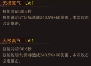 无极真气:对单个目标造成强力的暴击伤害,推荐在敌人血量较低时释放,给予对方足以致死的攻击。