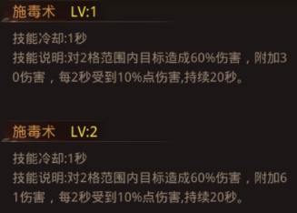 施毒术:对一定范围内的目标造成相应百分比的伤害,并且在随后的20秒内每2秒后收到一定百分比的伤害(伤害的百分比低于瞬间造成的伤害)