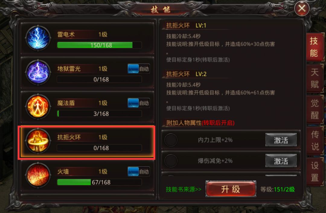 抗拒火环:推开低级目标,并造成60%+30点伤害(1级)