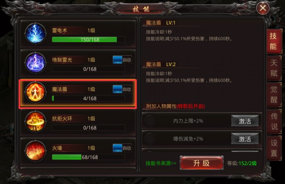 魔法盾:减少50.1%所受伤害,持续600秒。(1级)