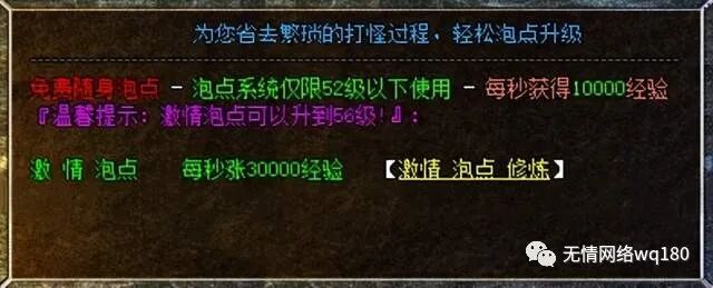 搞了半天,才发现自己没有开启泡点,很意外……犯了一个新手都不会犯的错误,不过问题不大,我们现在开启也是一样的,且看这个介绍,分为2种泡点,一个是上线系统给与经验一个是激情泡点可以一边打装备一边泡点升级;泡点到56级后升级则需要打经验灵珠升级。
