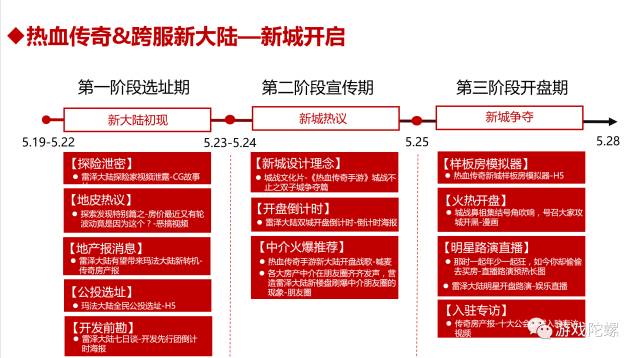 整体营销模式模拟了完整的房地产开发流程,环环相扣:包括前期的平面宣传和新盘选址,到后期全城热议的中介参与等,将游戏的虚拟转化成了一场现实感十足的活动,而这样的地产开发过程恰恰是传奇类玩家较多接触的,从而能够快速进入角色,代入场景。