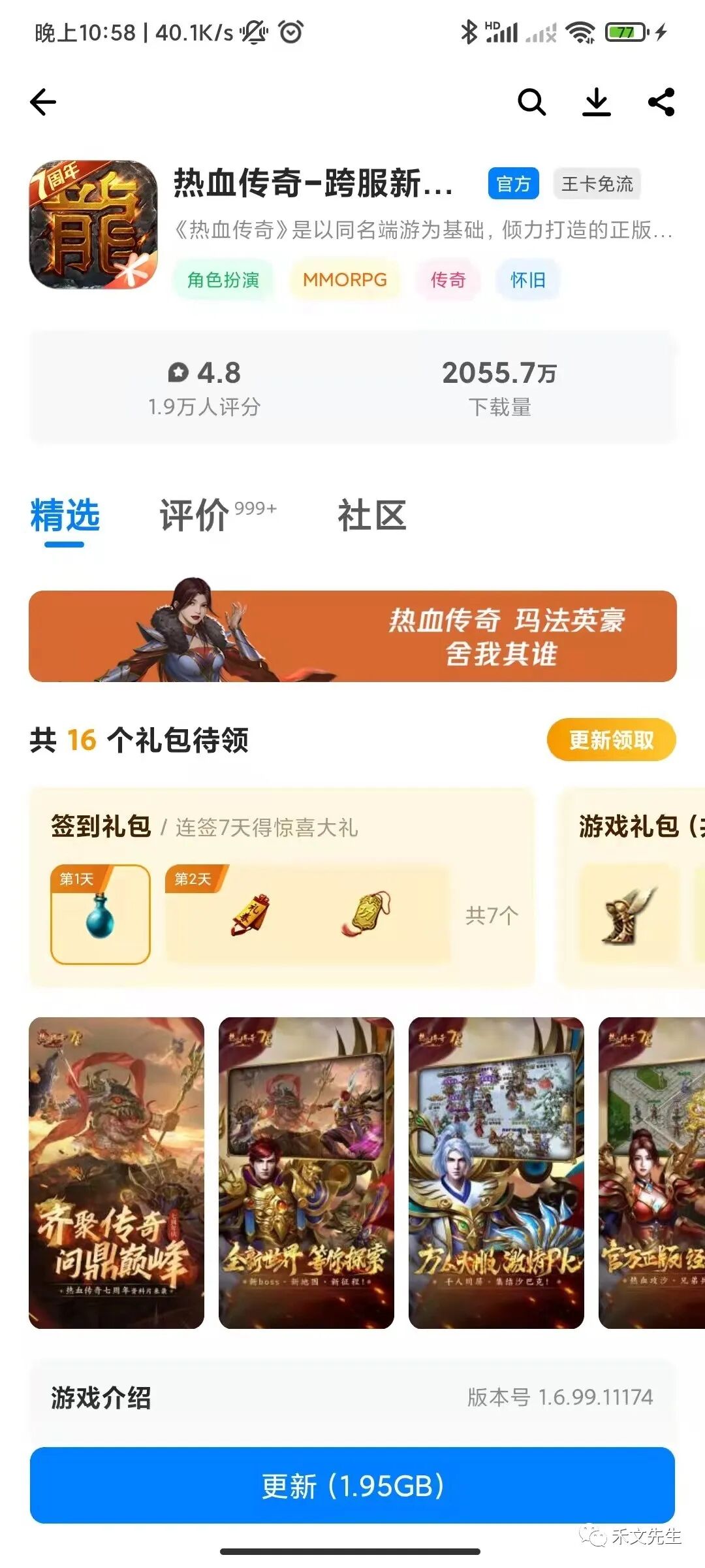 进入5、【应用宝APP】从 首页搜索热血传奇(有免费礼包也有需要会员等级的礼包),礼包上边的横幅进入也可以抽奖