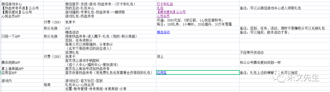 好啦,上边就是我整理的最近热血传奇可以领取礼包的地方,如果还有其他礼包没有记录下来,可以联系我重新整理!下图为整体的excel表格,如果对你有所帮助,可以关注转发!