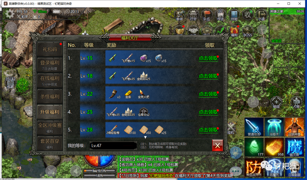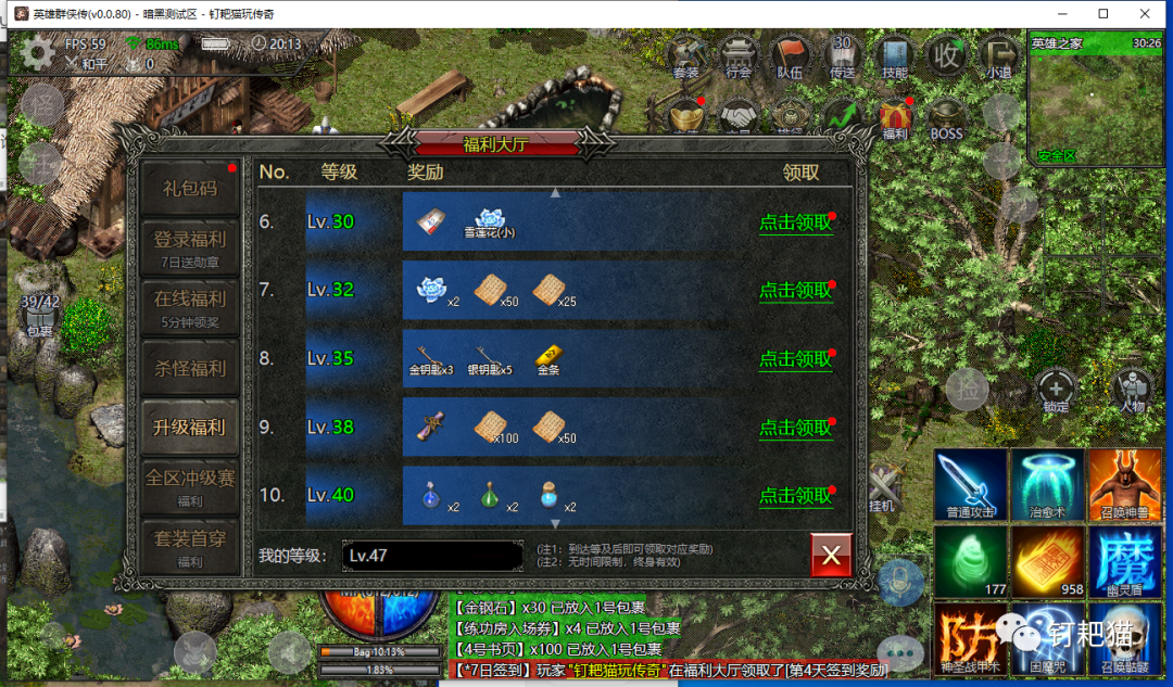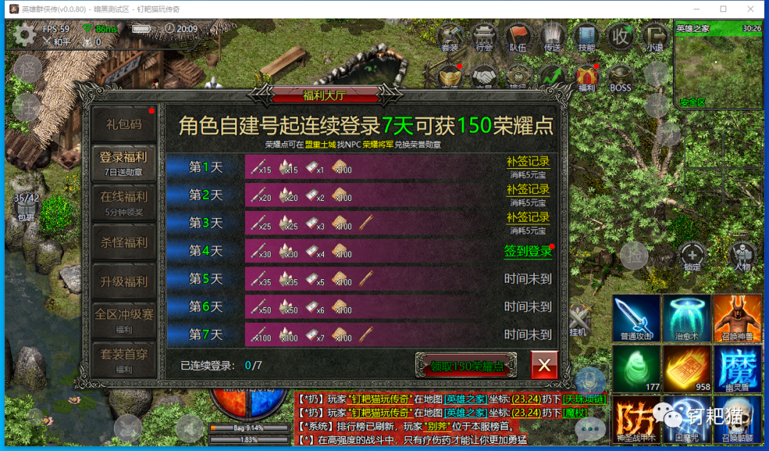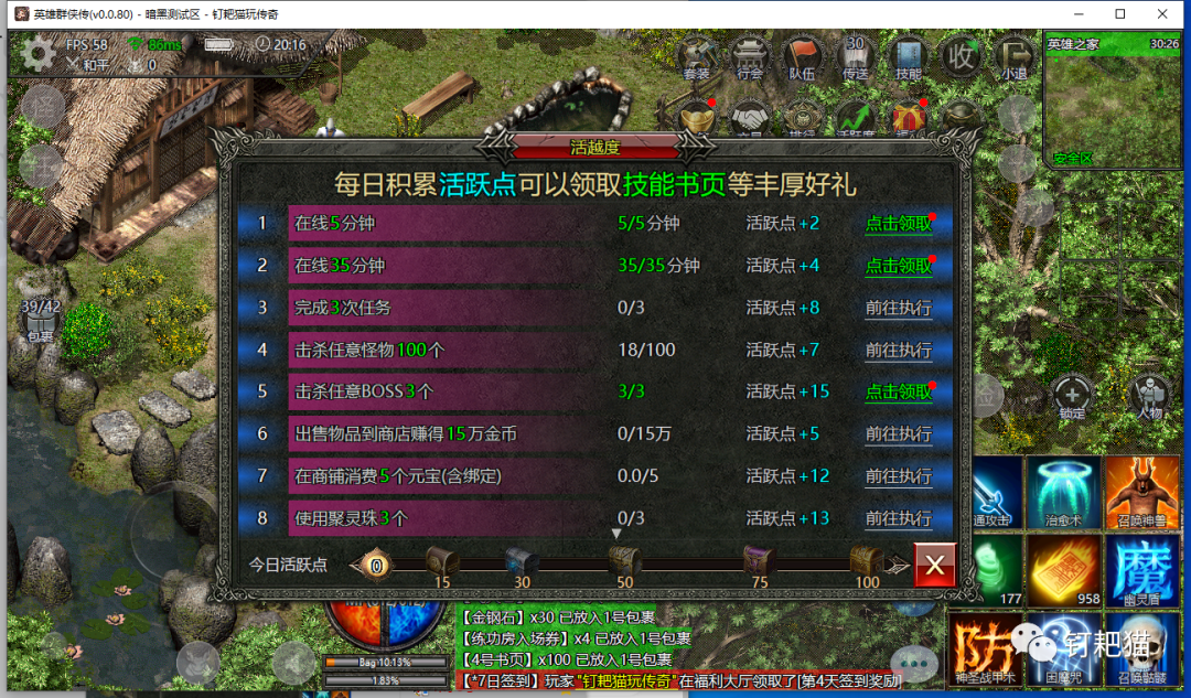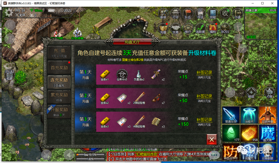这段时间技术部门一直都在进行测试调整,钉耙猫也是前天才拿到测试电脑端,为什么我喜欢电脑端,我想玩过的老玩家都清楚还有就是真正喜欢复古传奇的老骨灰,我想只有在电脑端上玩才能找的到零几年的那种感觉不知道怎么的,钉耙猫在手机上玩始终找不到,不知道你们感觉如何?。