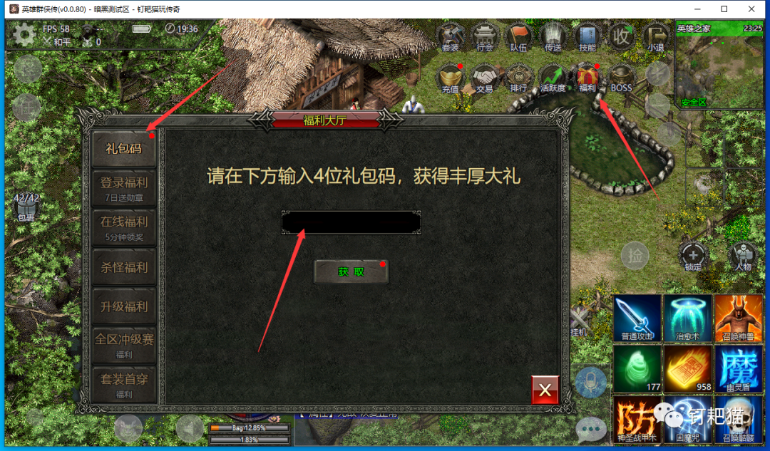 第二种在操作界面,点击福利,然后点击礼包码输入6666/8888,领取专属礼包。